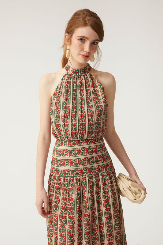 Rebajado un 60%DENISA - VESTIDO LARGO CON ESTAMPADO