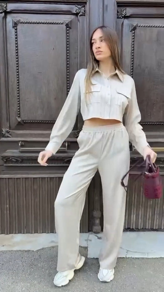 Rebajado un 60%GENMA - CONJUNTO TOP Y PANTALÓN PLISADO