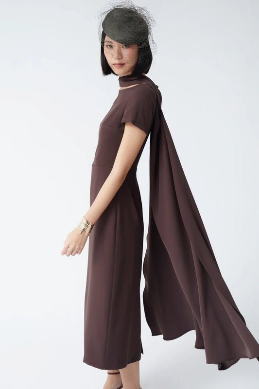 Rebajado un 60%CELIA - VESTIDO MIDI CON CHAL ELEGANTE