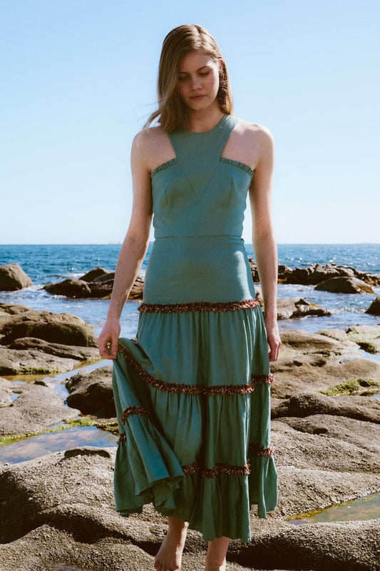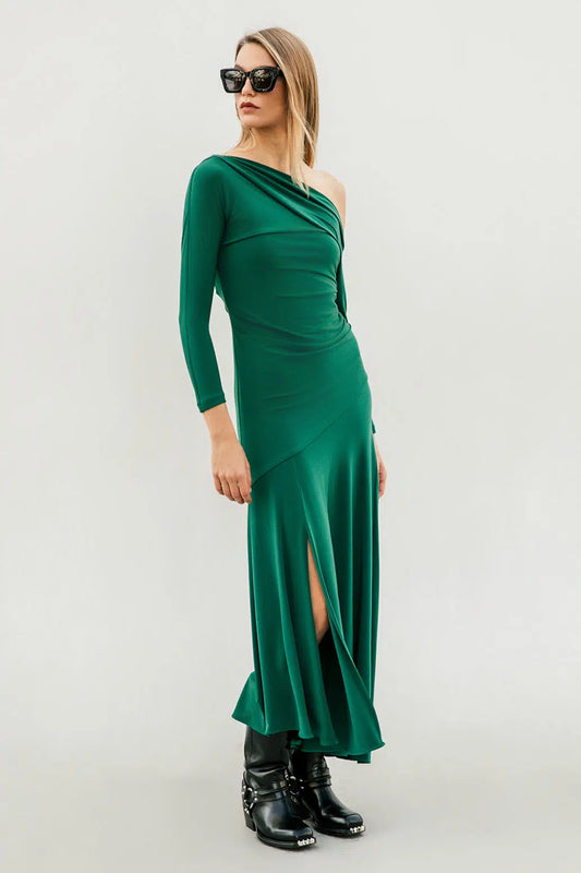 Rebajado un 60%ALEJANDRA - VESTIDO LARGO ASIMÉTRICO VERDE