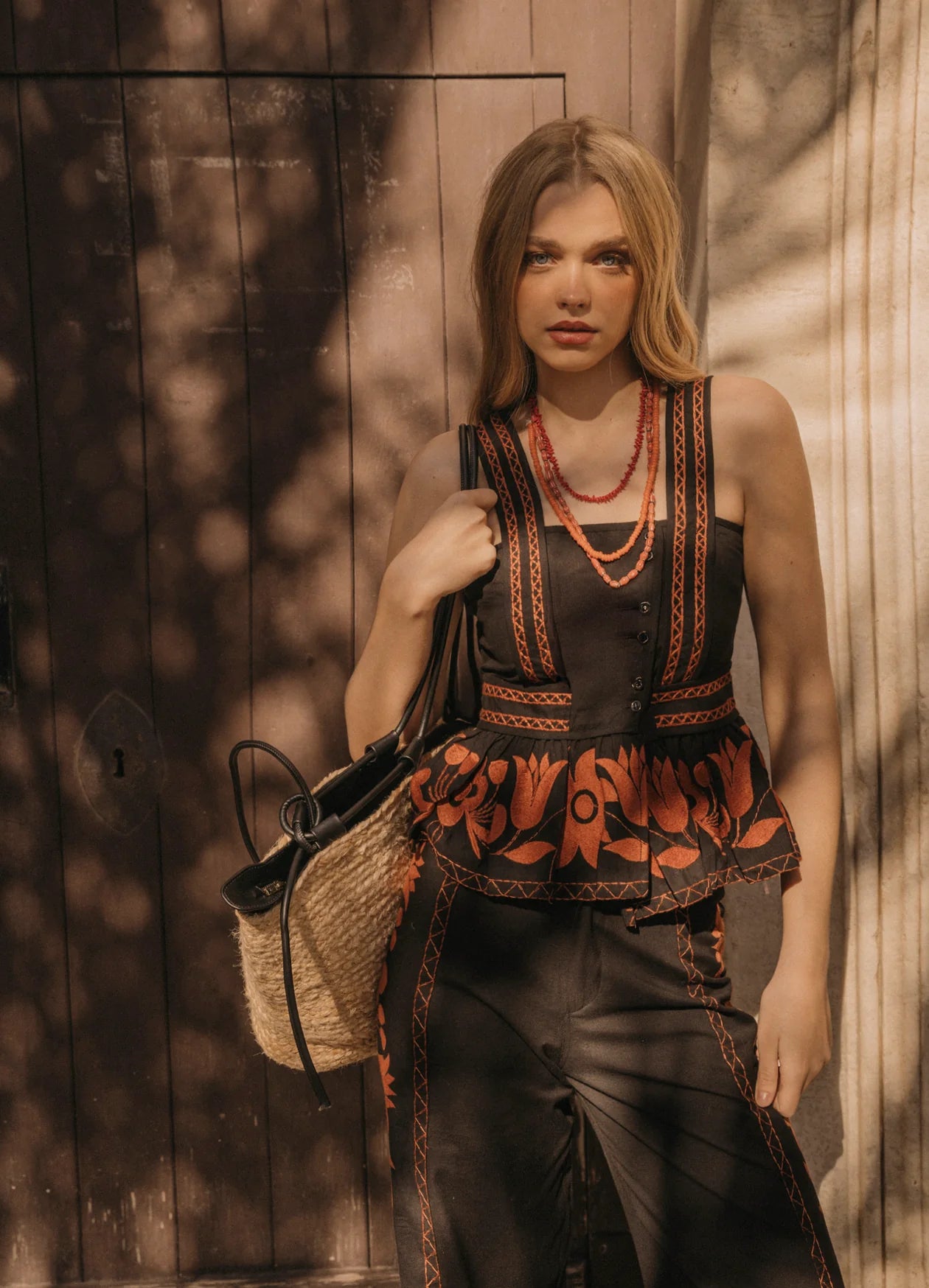 Nuestro popular conjunto bordado destaca por su silueta favorecedora, bordados artesanales y estructura cuidada que aportan carácter, elegancia y fuerza. Ideal para días especiales donde quieres mostrar tu estilo con confianza.