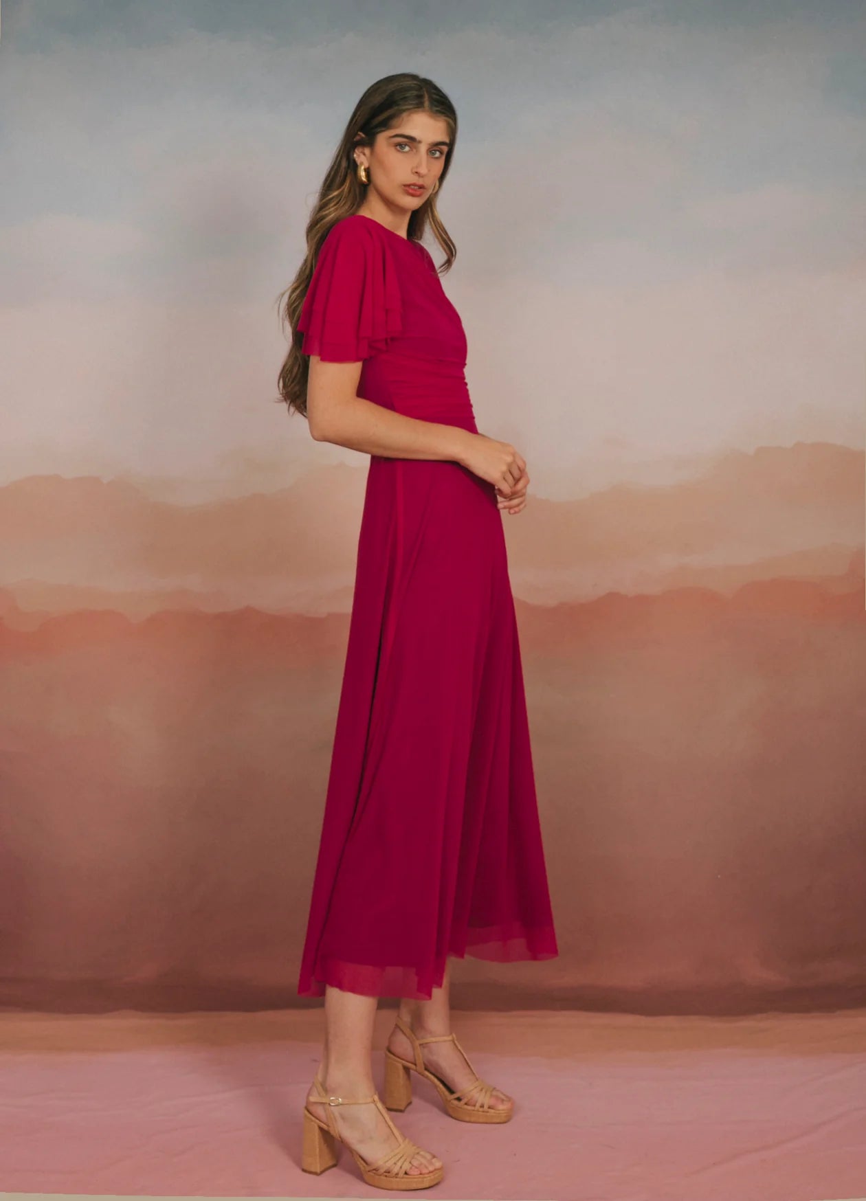 MAGDA - VESTIDO MIDI CON MANGAS CAPEADAS